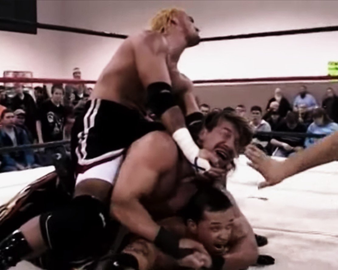 •CM PUNK vs. EDDIE GUERRERO vs. REY MYSTERIO (IWA-MS 03/01/02): This has no reason to be this good in such a tiny venue with ropes as loose as an old rubber band. These greats went for it though. Eddie Guerrero had nothing to prove. Rey was maskless but a star that clearly was getting better each day. Punk was champ but let's be honest, had a lot to prove here. He had to keep up with two of the best workers. And the young Punk did it! These guys went for fun spots. They went for tricky spots. And they hit them all. It wasn't as crisp as you'd see because of the ropes but damn they didn't let anything stop them. Now I'll stop you, it's not a tank emptying battle for the ages but for an indie match less than 15 minutes, this puppy will put a smile on your face.