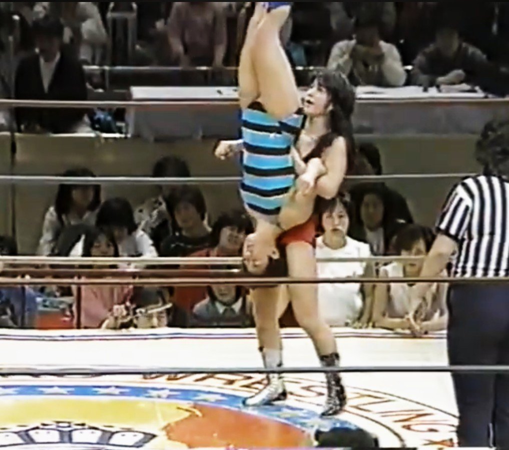 •Jumping Bomb Angels (Tateno & Yamazaki) vs Yukari Omori & Hisako Uno (Akira Hokuto): Rabid pace and an excellent dynamic with Omori as power house paired with the young but competent Uno. You might think she was a liability at this age but she was making Tateno & Yamazaki look great while pulling off her beginning offense in a believable, intense manner. The Angels were in top form today and that's all I need to say about that 🙂 Very good to great match.