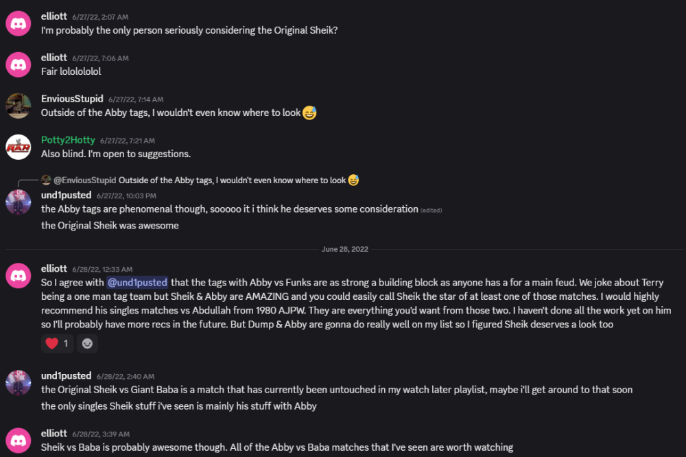 Seconding the Sheik/Goulet v Dick/Thomas tag, it's incredible.