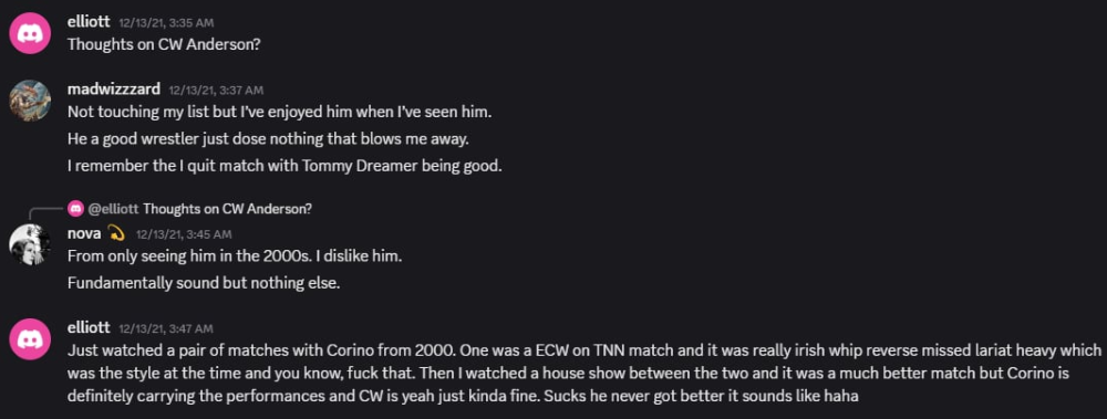 Just last month MLW had CW Anderson killed off in storyline by their champion in a Chamber of Horrors match and Brock Anderson had a match last week to get revenge (which he lost). I just thought that was funny. Anyway here's some actual opinions on CW from the discord.