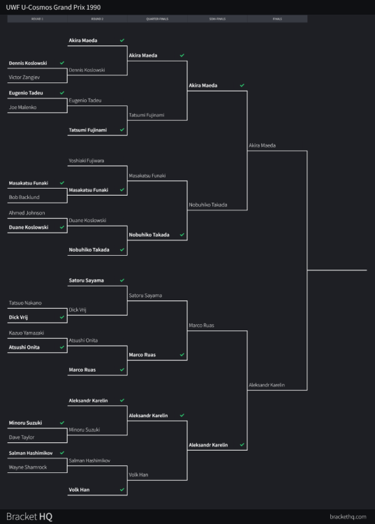 Don't feel too bad about filling in the details for those two matches, you still put more info into this one card then I have the entire month. Being honest, Maeda v Karelin was the obvious final but that doesn't make it any less exciting.The Tokyo Dome is gonna be rocking come New Year's Eve.