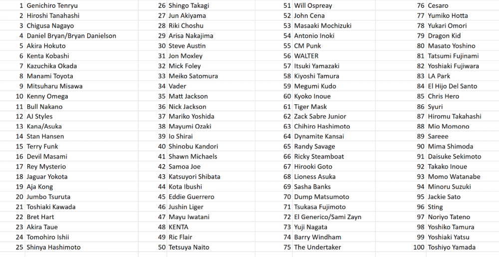 That's the 2023 ballot all wrapped up! Here are the top 100 https://gweproject.freeforums.net/thread/2845/top-greatest-matches-2023-results and here are all the rest of the matches that received at least one vote https://gweproject.freeforums.net/thread/2834/receiving-votes-2023-results. If you're interested in this project come in and join the discussion.