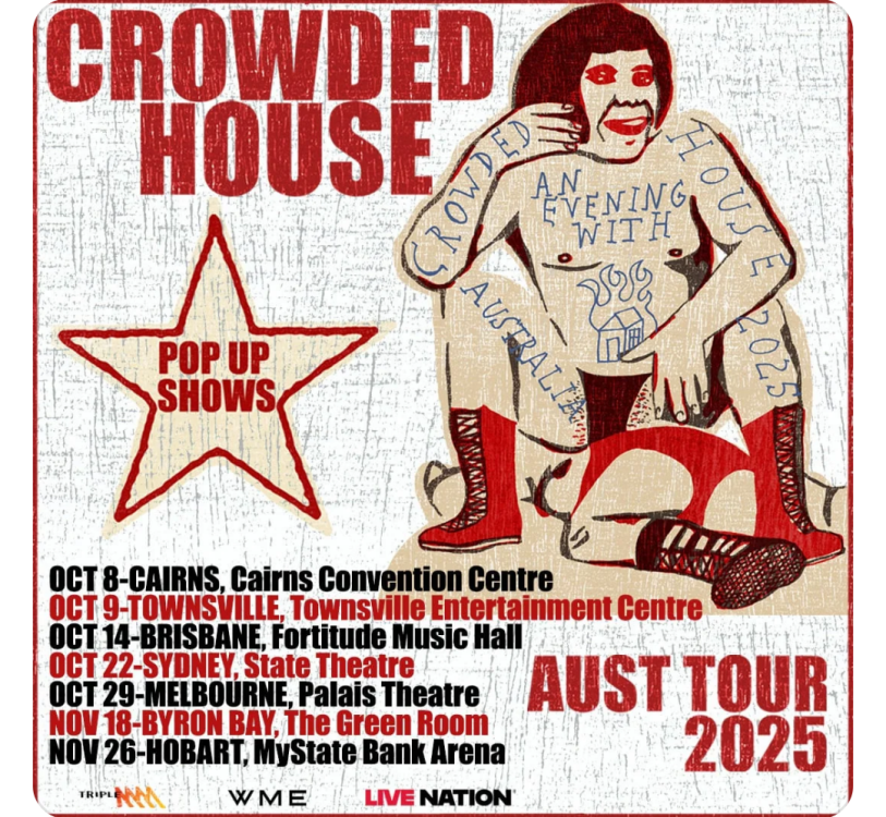 Some time ago, Australia stole a band from NZ and they had hits in the UK and Canada, the US etc so you may have heard of them.This poster for their upcoming tour for some reason features Andre, who for some reason has meth tatts.