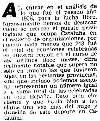 While on the topic of Spanish lucha libre, here's a fun stat that I just randomly came across. According to this Barcelonian article from early 1957, in 1956 there were a total of 243 shows in the Catalonia province. The most out of any Spanish province, according to the article. And keep in mind, either 36 or 37 of those shows were held at the two Barcelona bullrings (a 14,893-seater and a 19,582-seater).