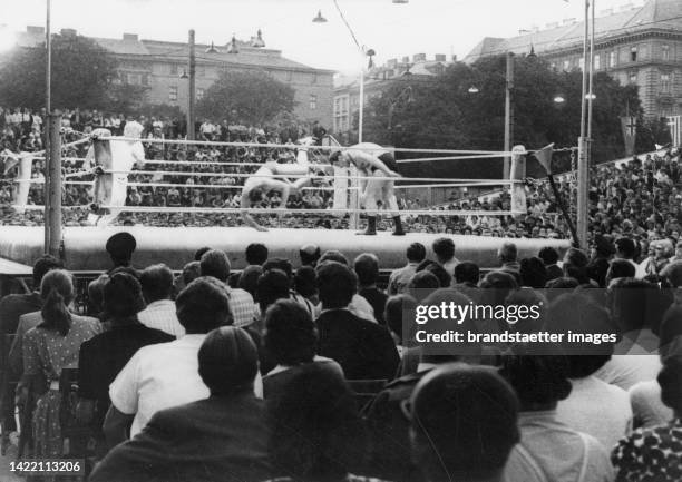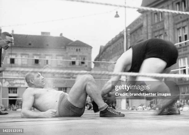 David Mantell Posted August 17, 2024 Report Posted August 17, 2024 25 minutes ago, David Mantell said: the other was a Frenchman doing the same gimmick he did back home in France and we have footage of him doing it in both territories and Germany too IIRC. Yup I was right - here is Le Grand Vladimir in Germany in the VdB in 1983: That ring with the yellow ropes and vertical cords reminds me of the ring in one of the two 1970s Roland Bock clips we have.